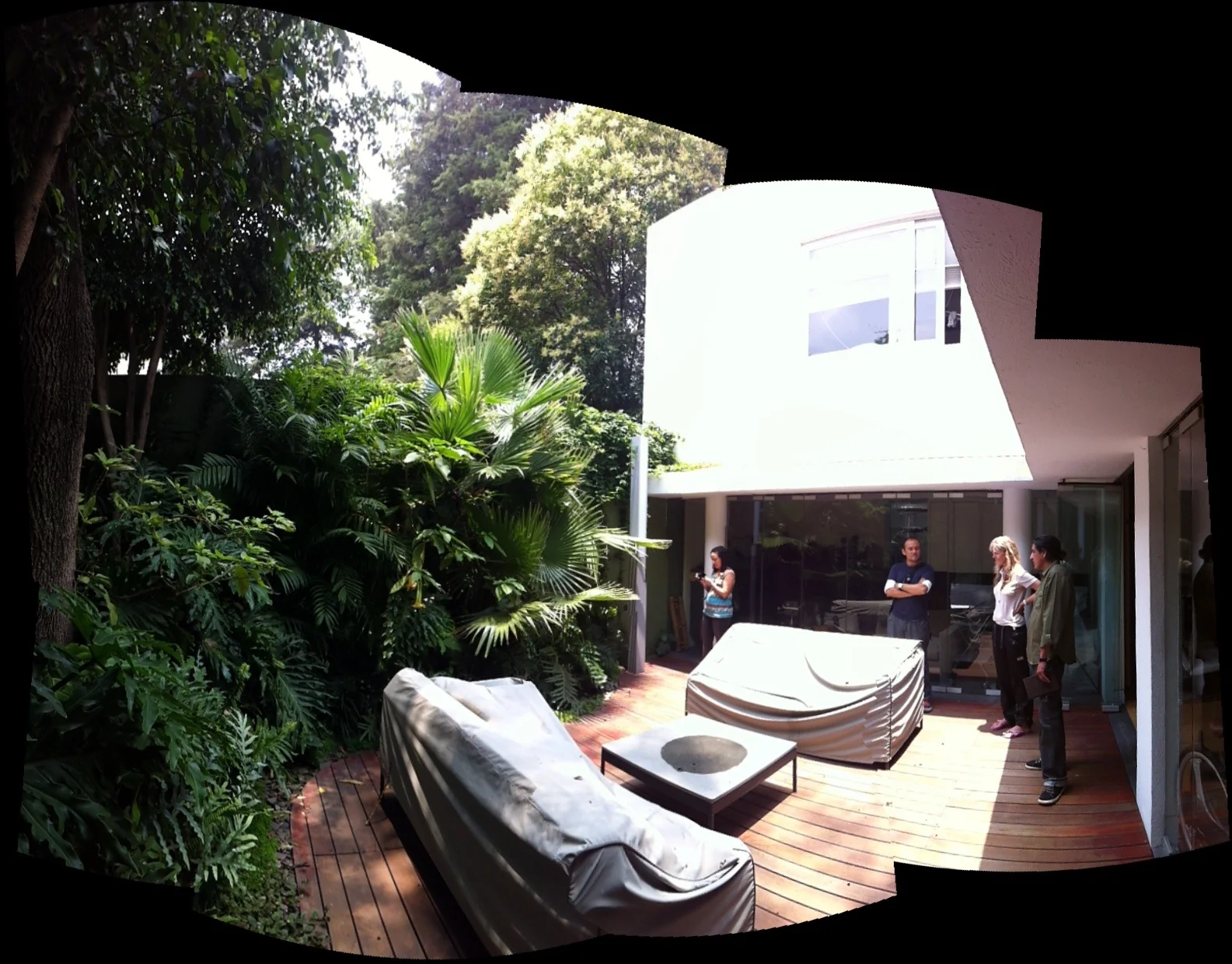 El sitio, un patio rodeado de vegetación, debía mantener condiciones lumínicas confortables sin reducir la incidencia de luz hacia el interior, requiriendo una solución que se adaptara a las condiciones de iluminación variable.