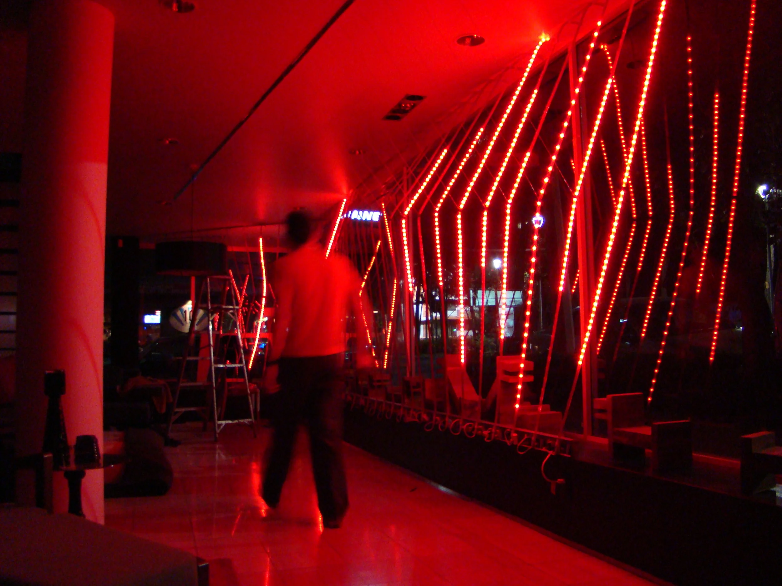 Más allá de la intervención bidimensional de la vitrina, se buscó una alteración espacial que en vez de obstruir el funcionamiento diario del showroom, lo acentuara interactuando con sus visitantes, expresando hacia el exterior su actividad interior.